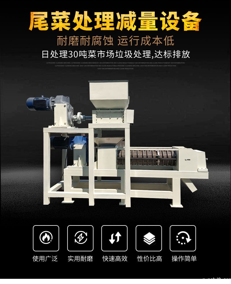 (3)收运回来的尾菜品种多,有些体积大,发酵时间较长,对整体发酵效果造成一定影响,且大体积尾菜缠绕在一起,增加搅拌臂受力,会降低搅拌轴及电机的寿命,因此在尾菜处理前阶段,采用撕碎机及压榨脱水机对尾菜分别进行粉碎机压榨脱水处理;